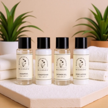 Juego de artículos de tocador pequeños para baño de Hotel de lujo de 5 estrellas Mini botella de champú y acondicionador para hoteles